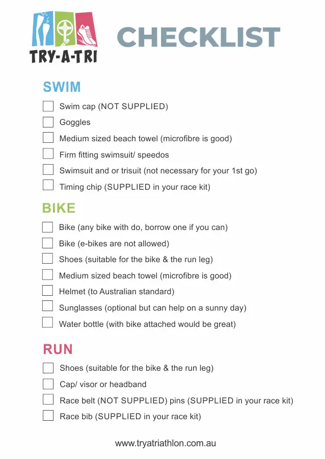 - Organise your gear in the order you will use it – run through transitions in your mind, bike then run, remember to take everything you need for your swim.
